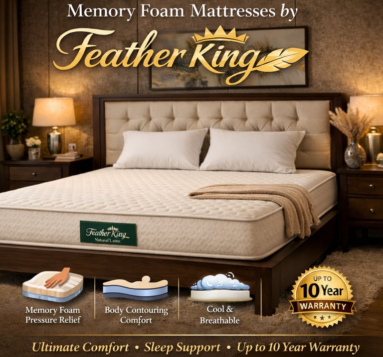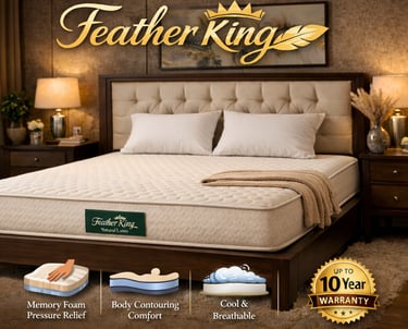 Feather King Memory Foam Mattresses are engineered to deliver superior pressure relief, body-contouring comfort, and long-lasting durability. Crafted using high-density, temperature-responsive memory foam, our mattresses adapt to your body shape, reduce pressure points, and promote healthy spinal alignment for deep, uninterrupted sleep.